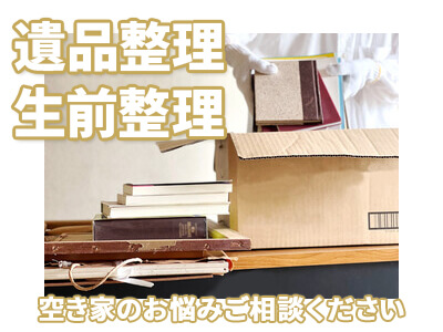 遺品整理、生前整理、特殊清掃、ゴミ屋敷清掃は見積無料。